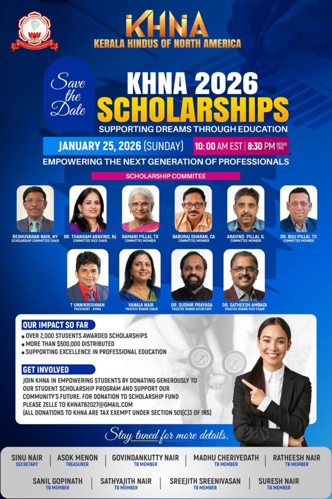 As you are aware, KHNA, a 501(c)(3) nonprofit organization has been providing educational scholarships to the economically disadvantaged bright students in the state of Kerala, for the past two decades. The current Trustee Board is committed to continuing this noble and charitable activity. Our mission is to provide these young minds with the opportunity to pursue higher professional courses, thereby enabling them to become productive and contributing members of society.